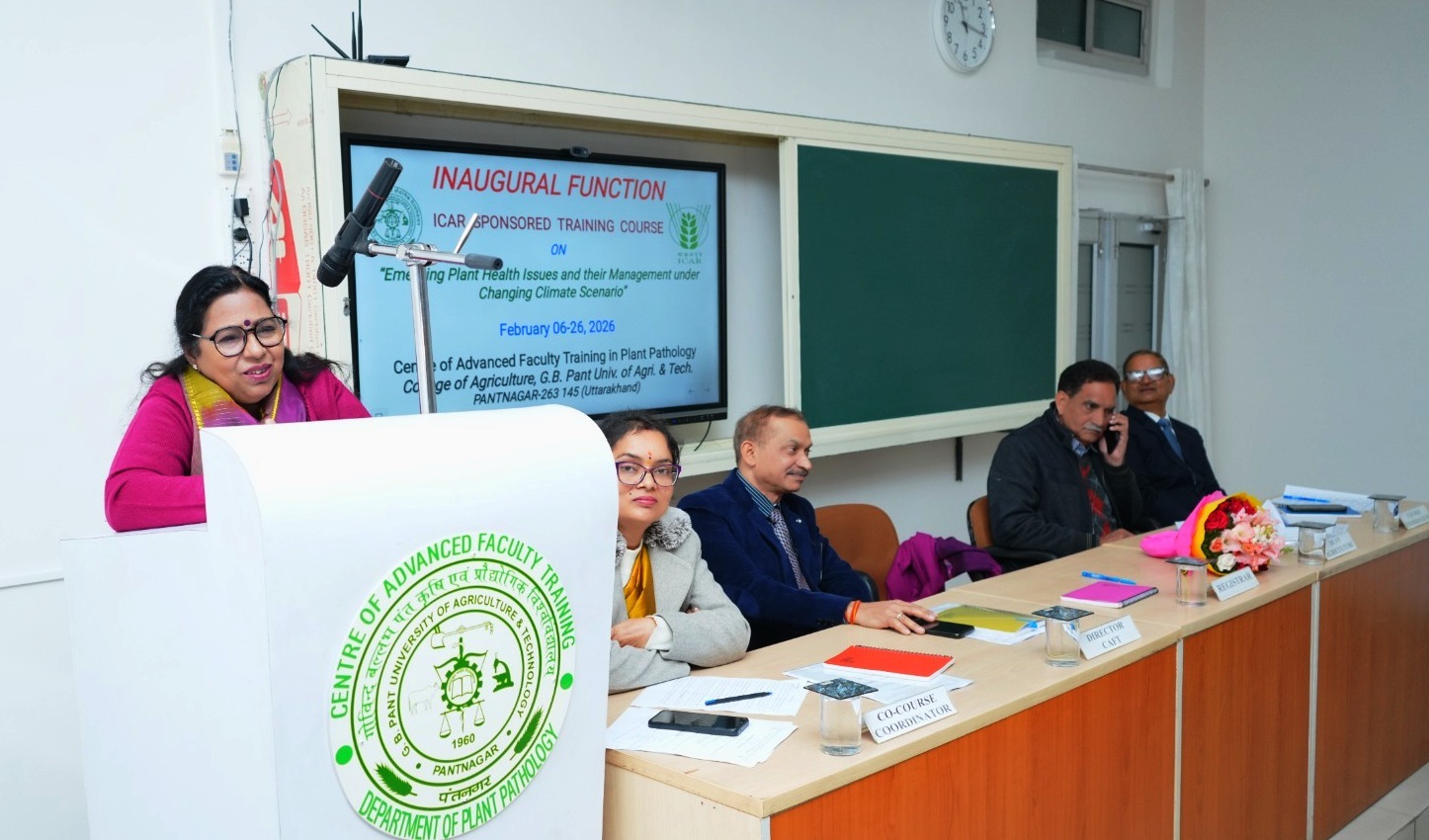 पंतनगर। विश्वविद्यालय के कृषि महाविद्यालय के पादप रोग विज्ञान विभाग में ‘जलवायु परिवर्तन से फसलों में हो रही स्वास्थ्य संबंधी समस्याएं एवं उनका प्रबंधन’ विषय पर 21-दिवसीय उच्च संकाय प्रशिक्षण कार्यक्रम का शुभारंभ किया गया। कार्यक्रम का उद्घाटन विश्वविद्यालय की कुलसचिव डा. दीपा विनय ने मुख्य अतिथि के रूप में किया। उद्घाटन सत्र में डा. दीपा विनय ने अपने अनुभव साझा करते हुए कहा कि कृषि क्षेत्र में हुए अनुसंधानों का व्यापक प्रचार-प्रसार आवश्यक है। कृषि वैज्ञानिकों को किसानों की आवश्यकताओं के अनुरूप अनुसंधान करना चाहिए। उन्होंने कहा कि वर्तमान परिस्थितियों में कृषि को उद्योग का दर्जा देना होगा तथा खेती में आधुनिक मशीनरी का अधिक से अधिक समावेश करना समय की मांग है।