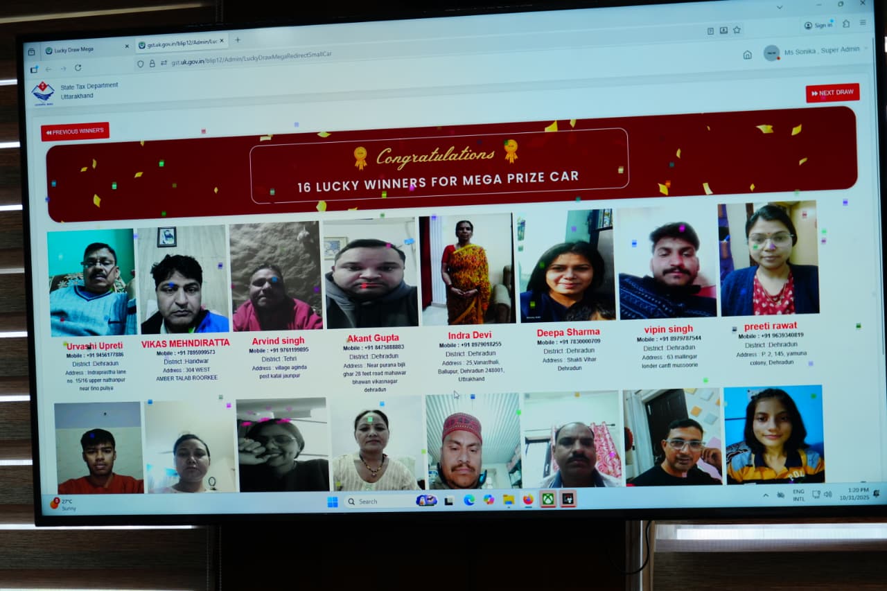 मुख्यमंत्री पुष्कर सिंह धामी ने राज्य स्थापना रजत जयंती समारोह का शुभारंभ करते हुए शुक्रवार को सचिवालय में ‘बिल लाओ, ईनाम पाओ’ के अंतर्गत मेगा लकी ड्रॉ निकाला। राज्य कर विभाग, उत्तराखंड द्वारा आयोजित इस कार्यक्रम में कुल 1888 लकी ड्रॉ विजेता चुने गए। नैनीताल जनपद की सोनिया और टिहरी जनपद के जसपाल रावत ने प्रथम विजेता के रूप में एक-एक इलेक्ट्रिक कार जीती।