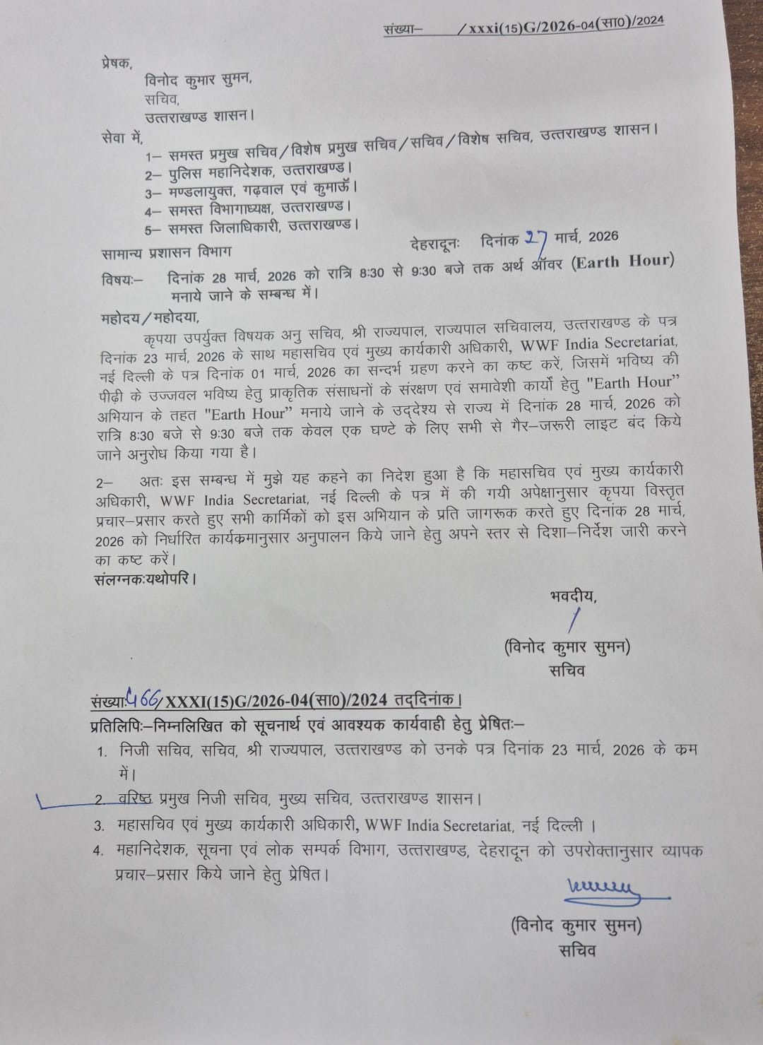 Earth Hour 2026: 28 मार्च को रात 8:30–9:30 बजे बंद रहेंगी लाइटें, उत्तराखंड शासन के निर्देश