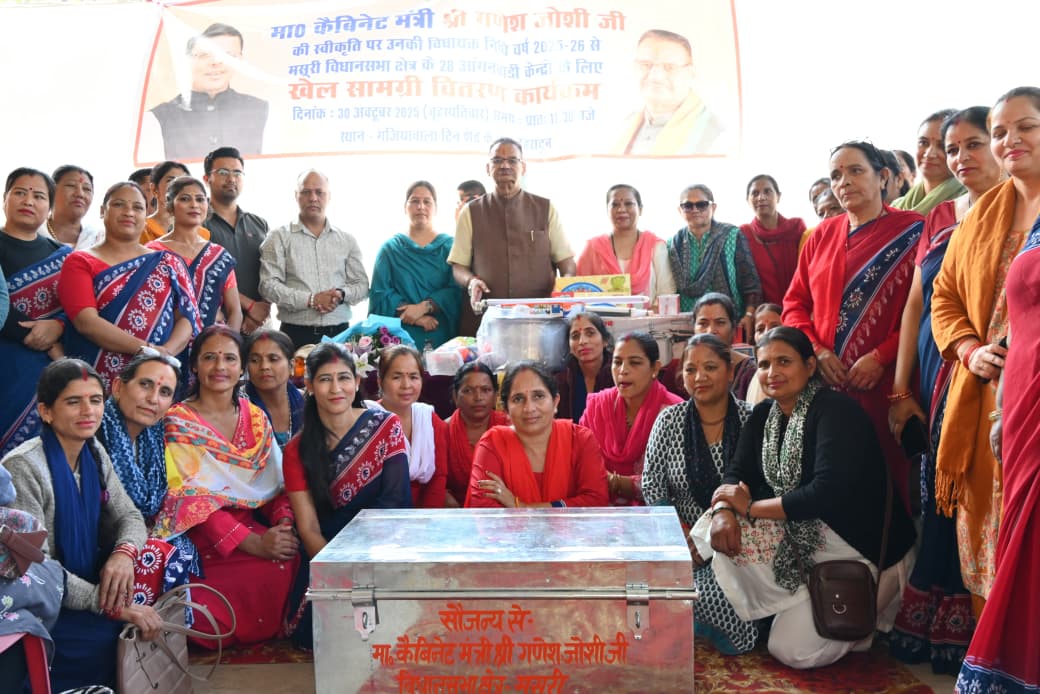 देहरादून 30 अक्टूबर। कैबिनेट मंत्री गणेश जोशी ने देहरादून के गजियावाला में मसूरी विधानसभा क्षेत्र के अर्न्तगत विकाखण्ड सहसपुर के तहत 15 ग्राम पंचायतों के लिए 28 आंगनवाड़ी केंद्रों को खेल एवं पठन-पाठन सामग्री का वितरण कार्यक्रम।