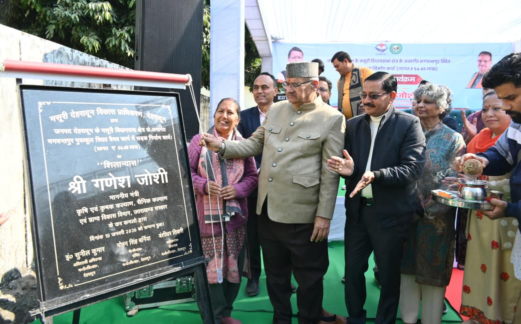 देहरादून, 15 जनवरी। कैबिनेट मंत्री गणेश जोशी ने आज जनपद देहरादून के मसूरी विधानसभा क्षेत्र के अंतर्गत भगवन्तपुर स्थित वैभव फार्म में रुपये 54.49 लाख की लागत से आंतरिक सड़क निर्माण कार्यों का विधिवत शिलान्यास किया।