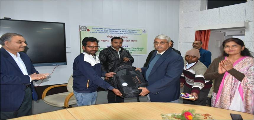 पंतनगर। 4 फरवरी 2026। विश्वविद्यालय के पशु चिकित्सा एवं पशु विज्ञान महाविद्यालय, शैक्षणिक डेयरी एवं कुक्कुट फार्म तथा पशुपालन प्रबंधन विभाग की प्रदर्शनी इकाई में कार्यरत सफाई कर्मचारियों हेतु स्वच्छता किट वितरण कार्यक्रम का आयोजन किया गया। यह कार्यक्रम भारतीय कृषि अनुसंधान परिषद, नई दिल्ली द्वारा संचालित ऑल इंडिया नेटवर्क प्रोजेक्ट ऑन वन हेल्थ के अंतर्गत अनुसूचित जाति उप-योजना के अंतर्गत आयोजित किया गया।